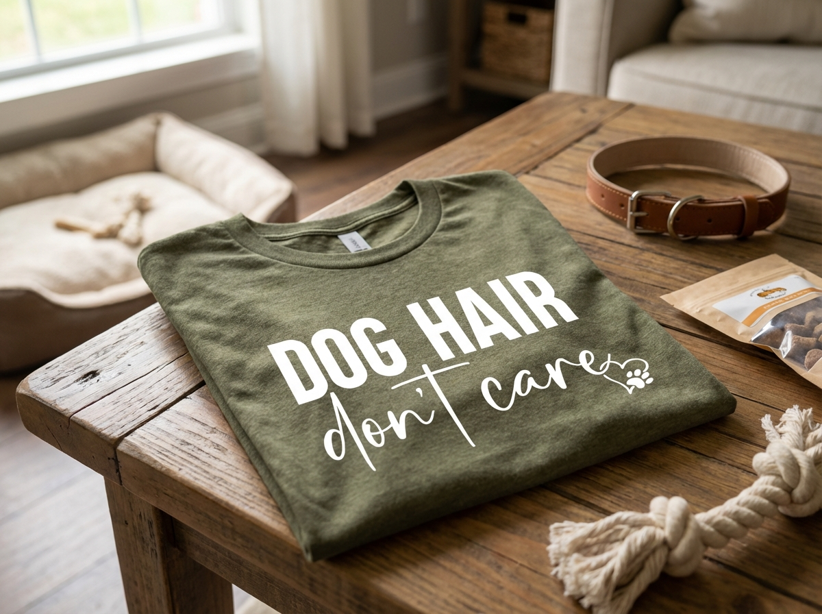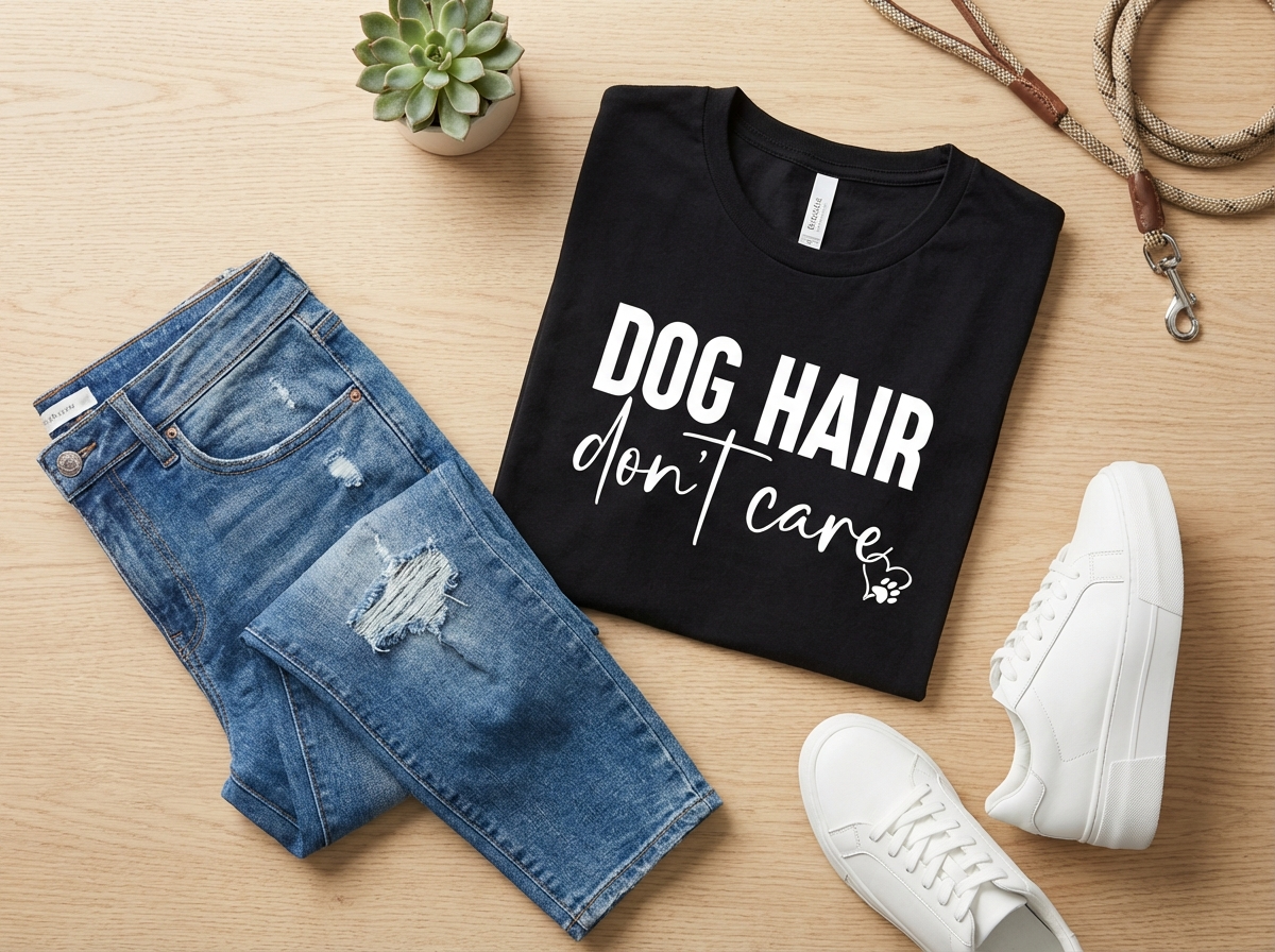 Made from lightweight, breathable fabric with a relaxed unisex fit — perfect for coffee runs, dog park days, and couch cuddles that leave evidence behind.