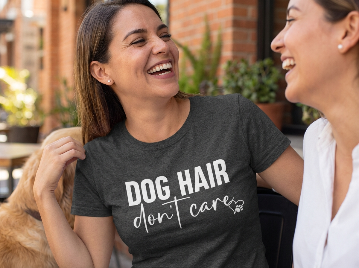 Unleash your inner dog lover with our “Dog Hair Don’t Care” T-shirt! Designed for those who proudly embrace the fur-filled joys of dog ownership, this shirt combines comfort with a playful attitude. Crafted from ultra-soft, breathable cotton, it keeps you cool and cozy whether you’re out for a walk with your pup or just lounging at home